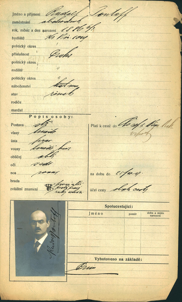 Jontof Rudolf: Žádost o vydání cestovního pasu