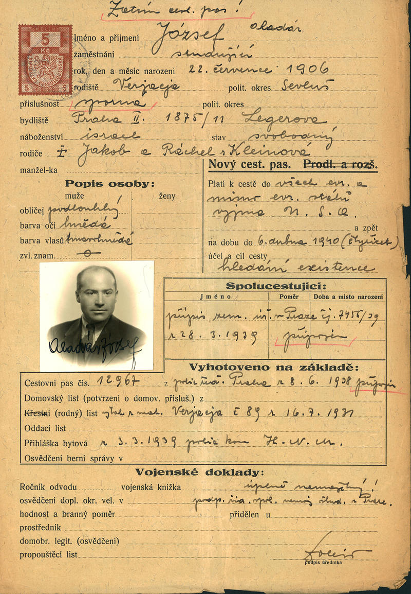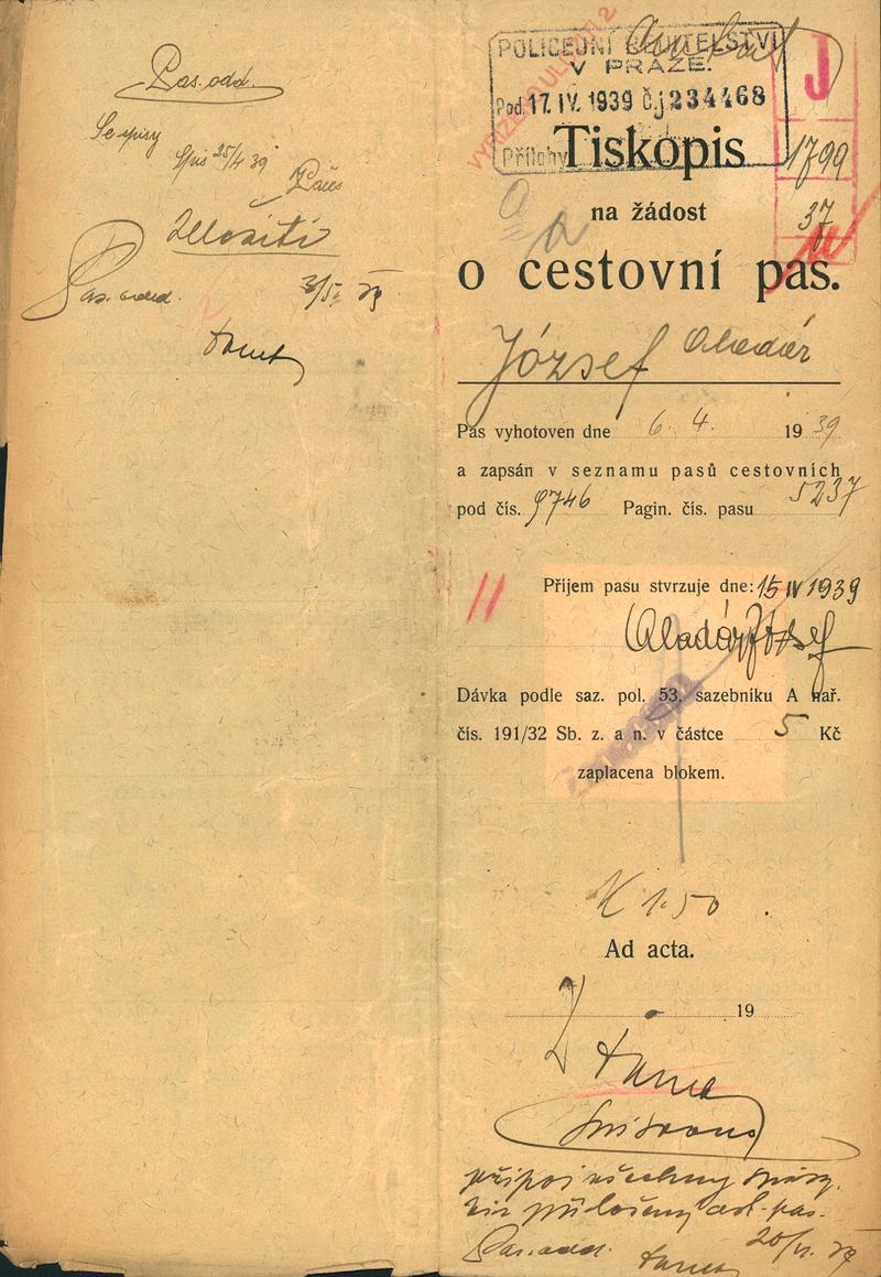 Jozsef Aladar: Žádost o vydání prozatímního cestovního pasu