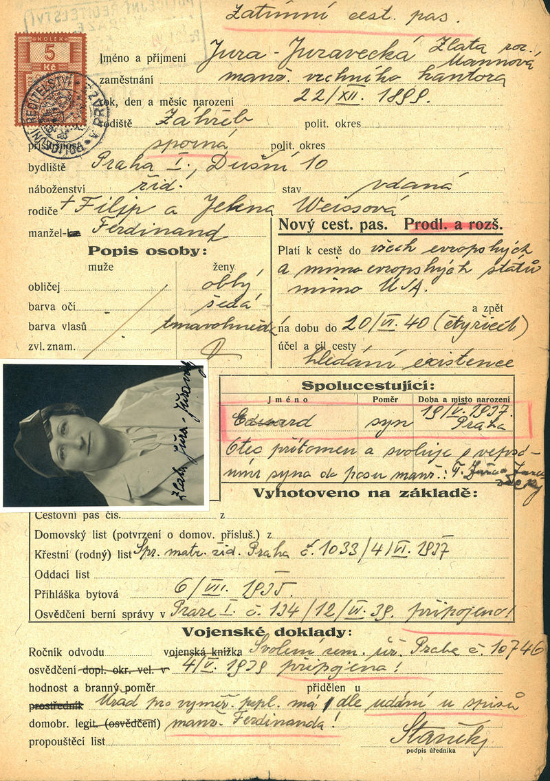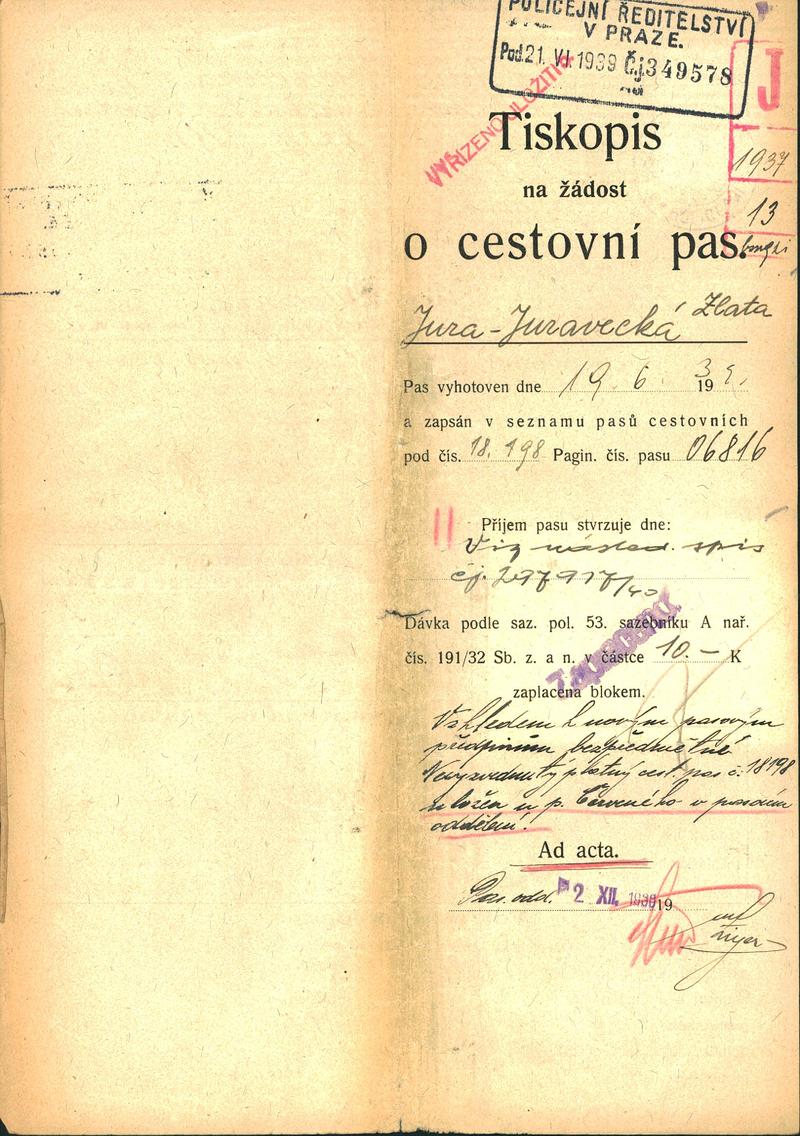 Jura Jurawieckiová Zlata: Žádost o vydání prozatímního cestovního pasu