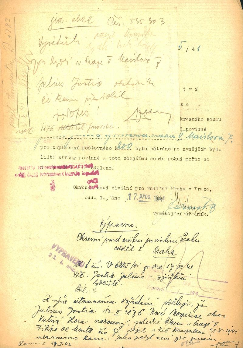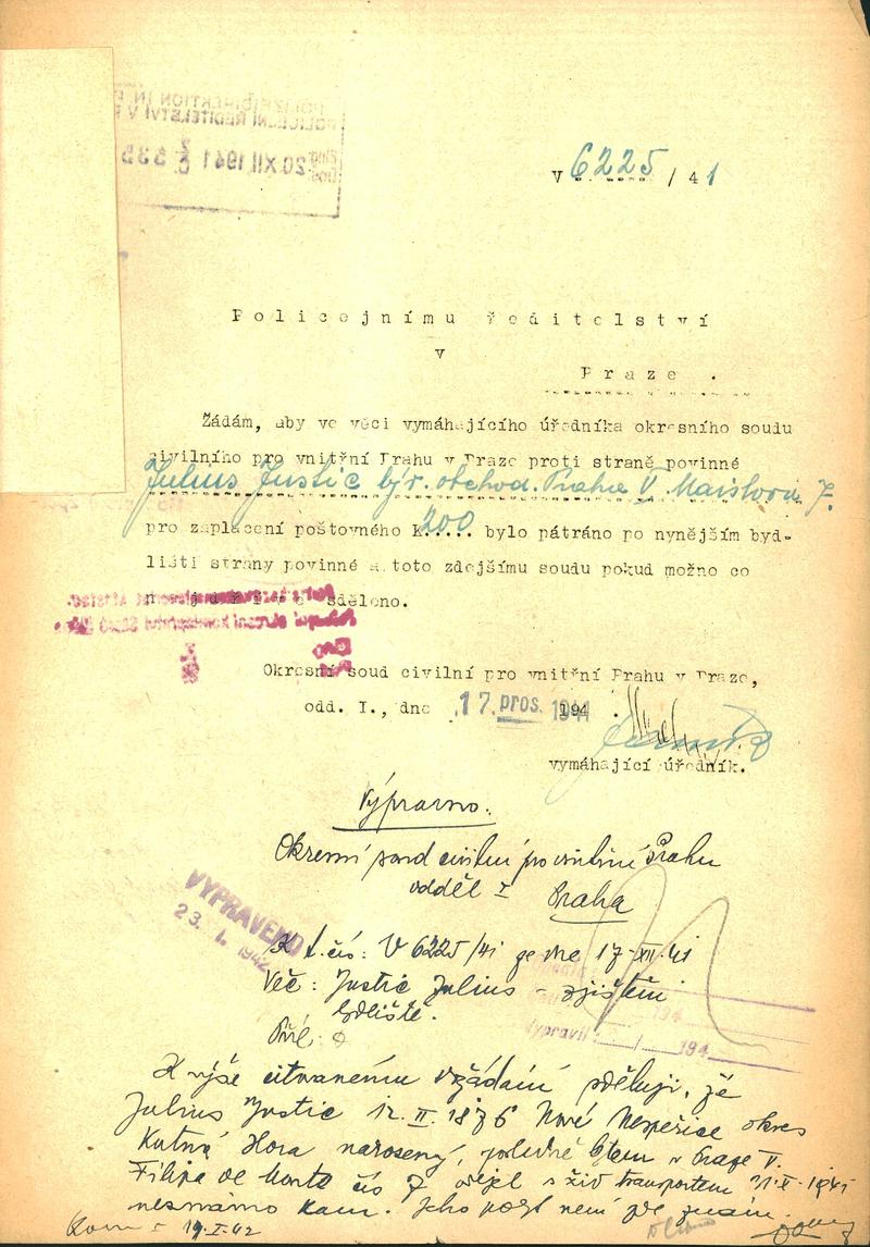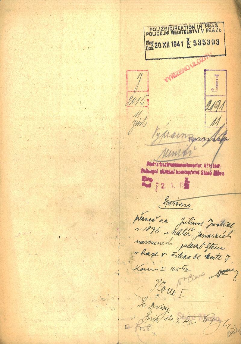 Nationalarchiv Prag > Polizei-Direktion Prag > 1941-1950 > J > Justic Julius