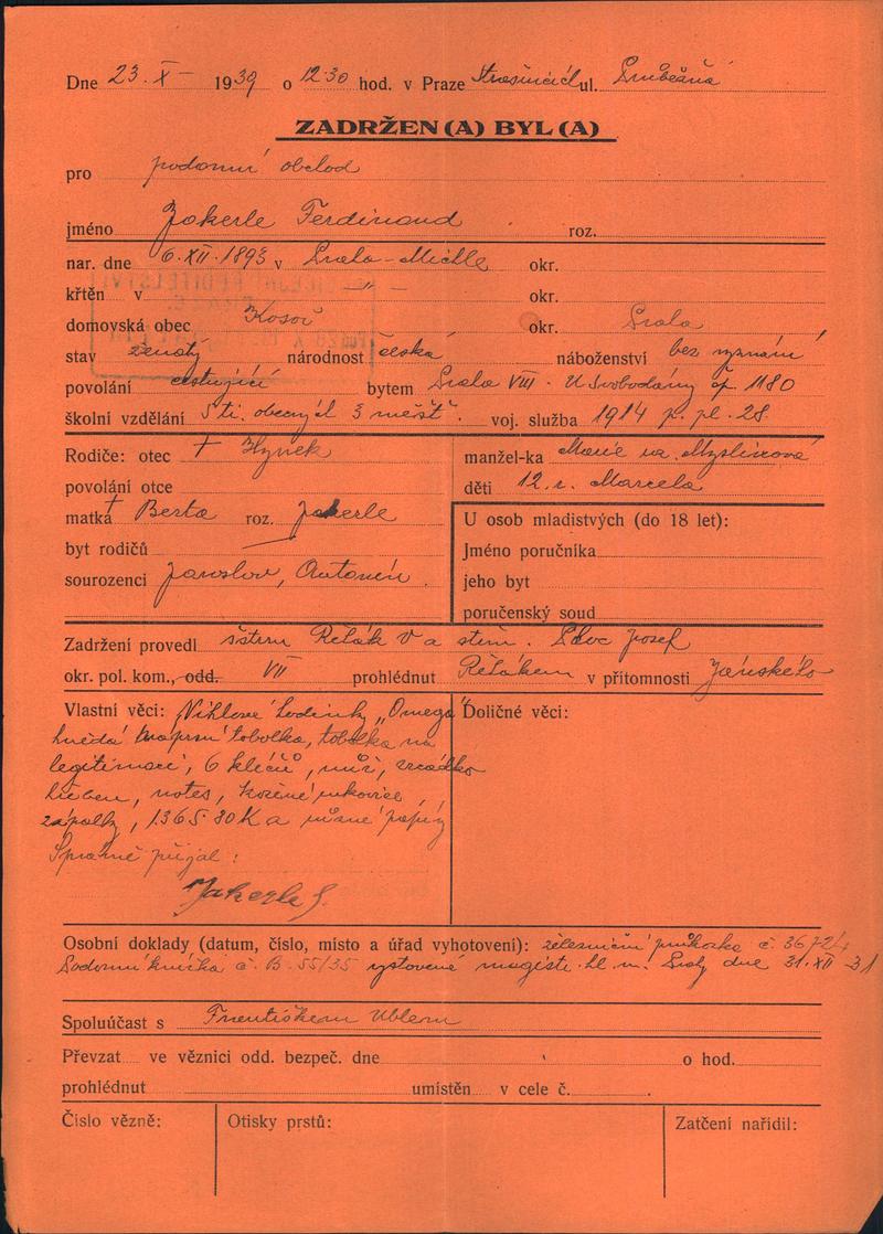 Nationalarchiv Prag > Polizei-Direktion Prag > 1941-1950 > J > Jakerle Ferdinand