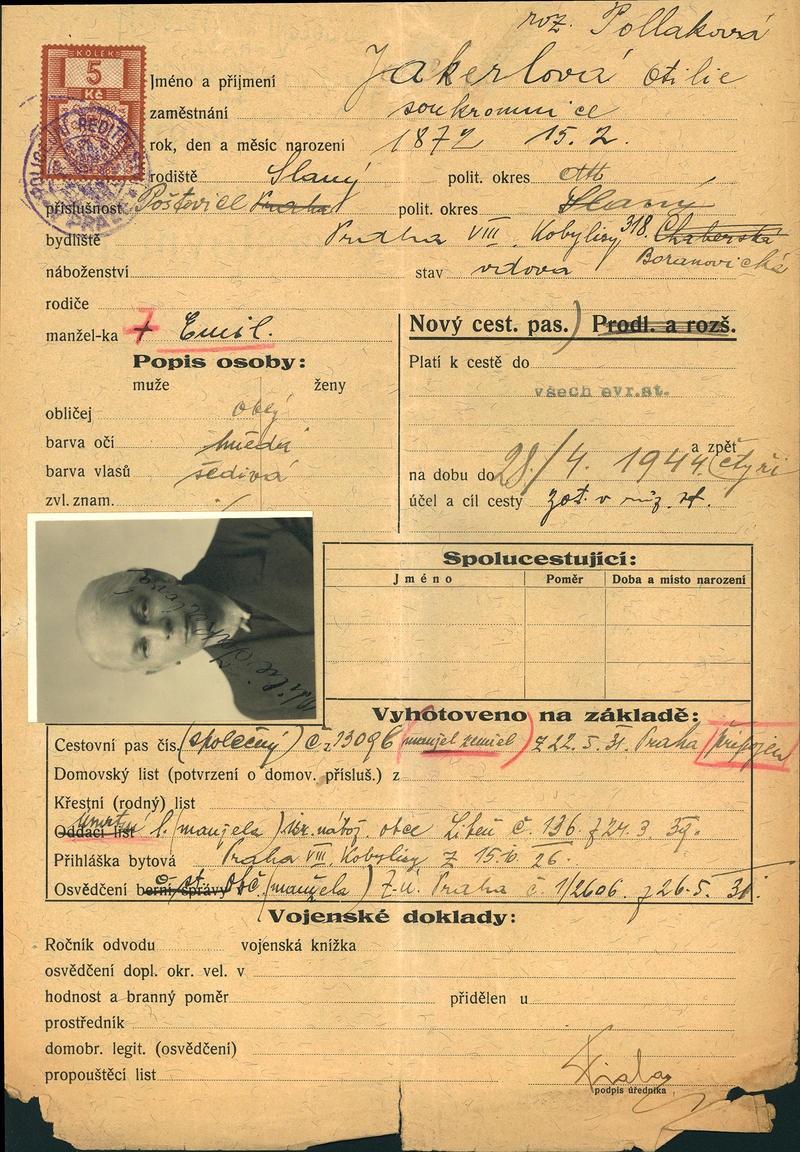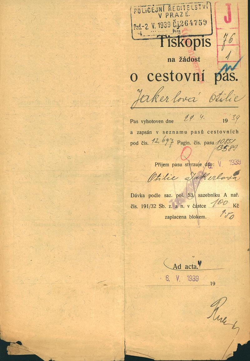 Jakerleová Otilie: Žádost o vydání cestovního pasu