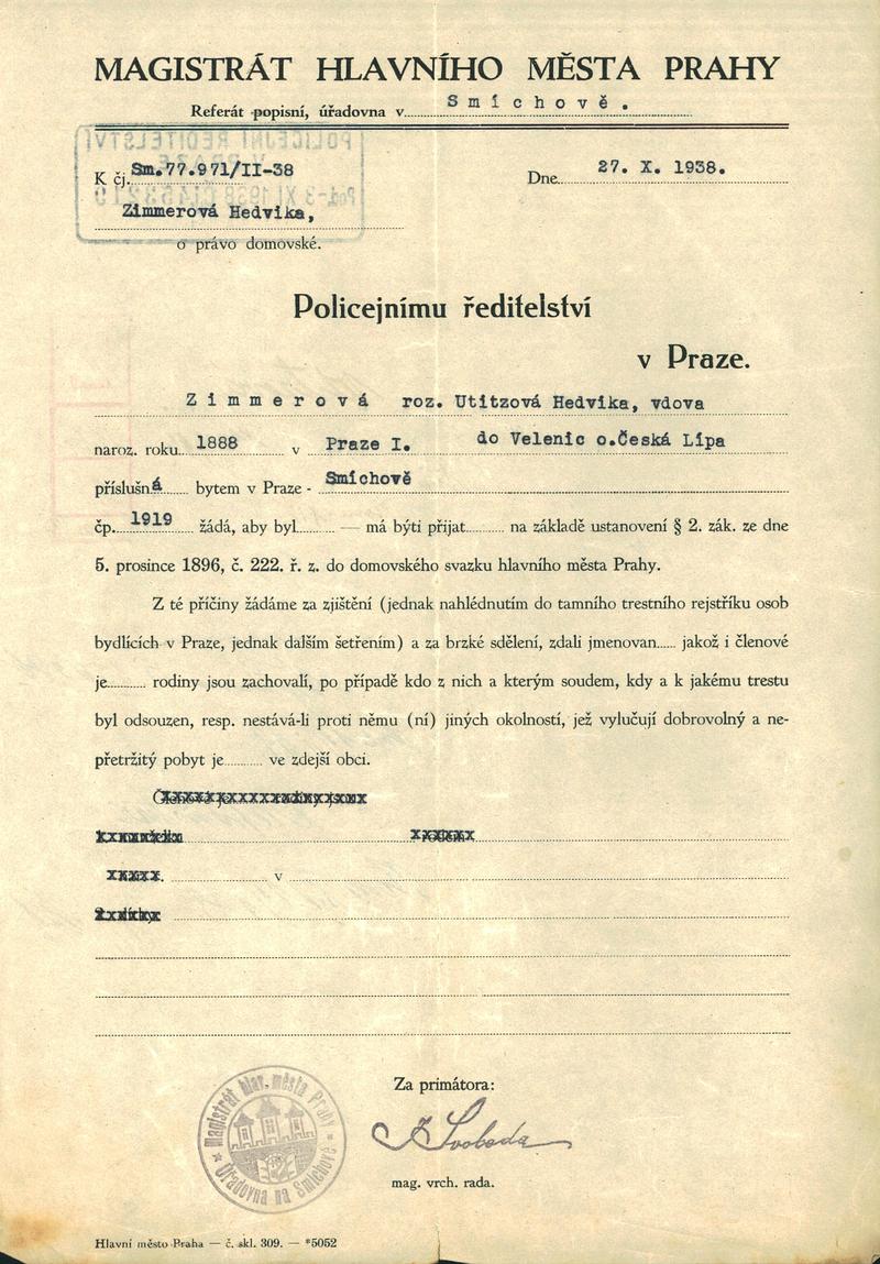 Nationalarchiv Prag > Polizei-Direktion Prag > 1931-1940 > Z > Zimmerová Hedvika