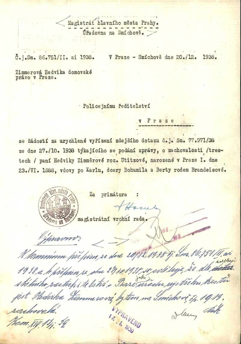 Nationalarchiv Prag > Polizei-Direktion Prag > 1931-1940 > Z > Zimmerová Hedvika