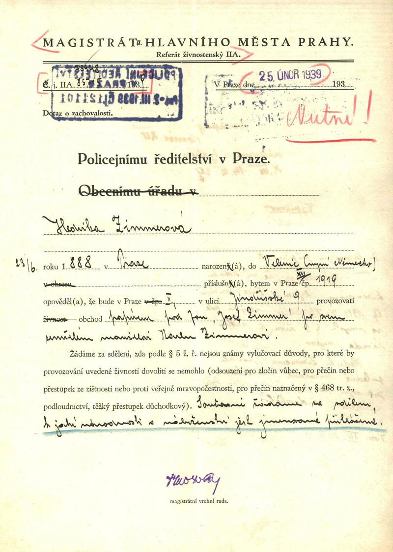 Nationalarchiv Prag > Polizei-Direktion Prag > 1931-1940 > Z > Zimmerová Hedvika