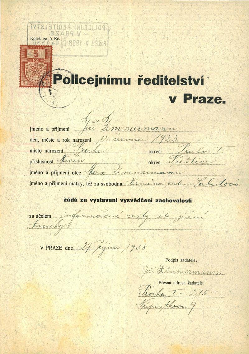 Zimmermann Jiří: Žádost o vystavení vysvědčení zachovalosti