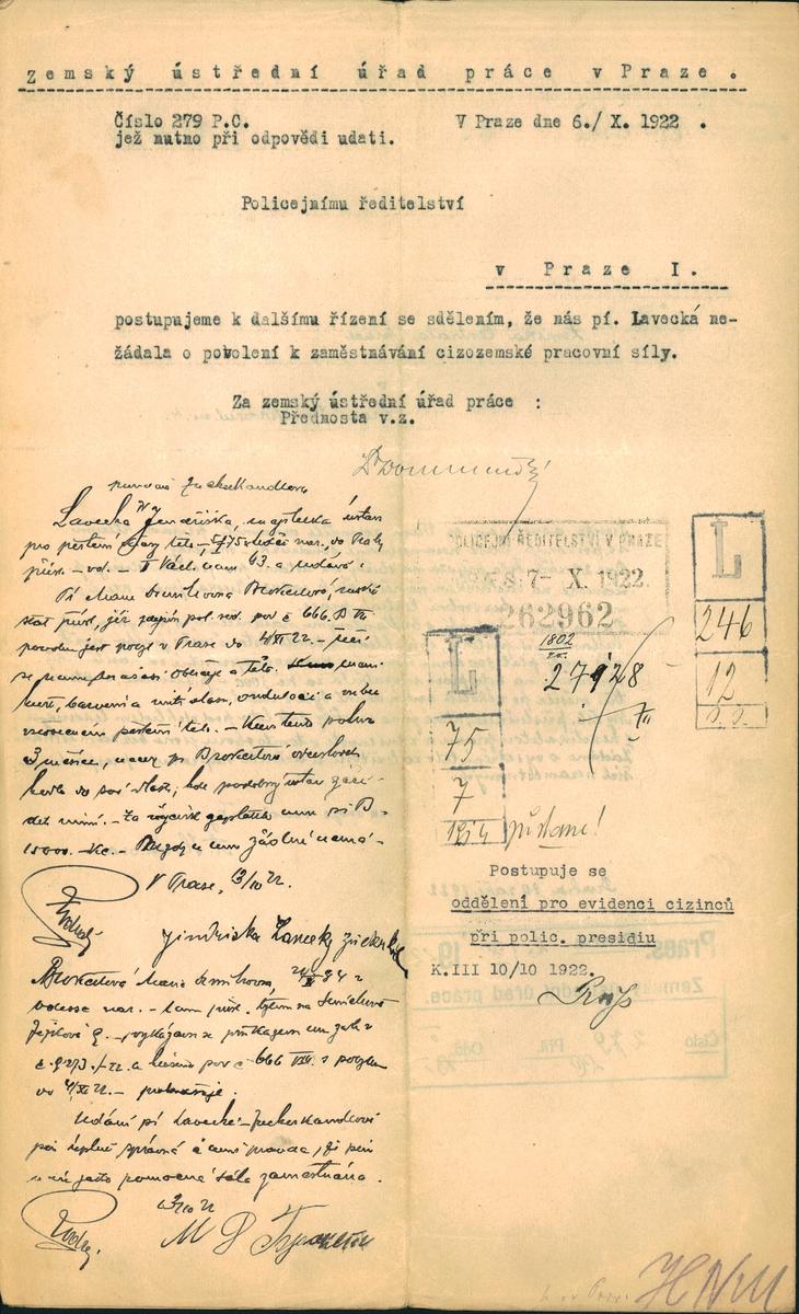 Zuckerkandlová Jindřiška: Šetření ve věci zaměstnávání cizího státního příslušníka