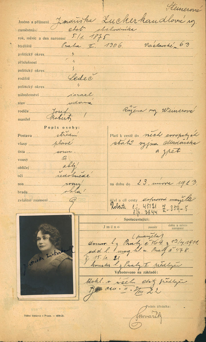 Nationalarchiv Prag > Polizei-Direktion Prag > 1931-1940 > Z > Zuckerkandlová Jindřiška