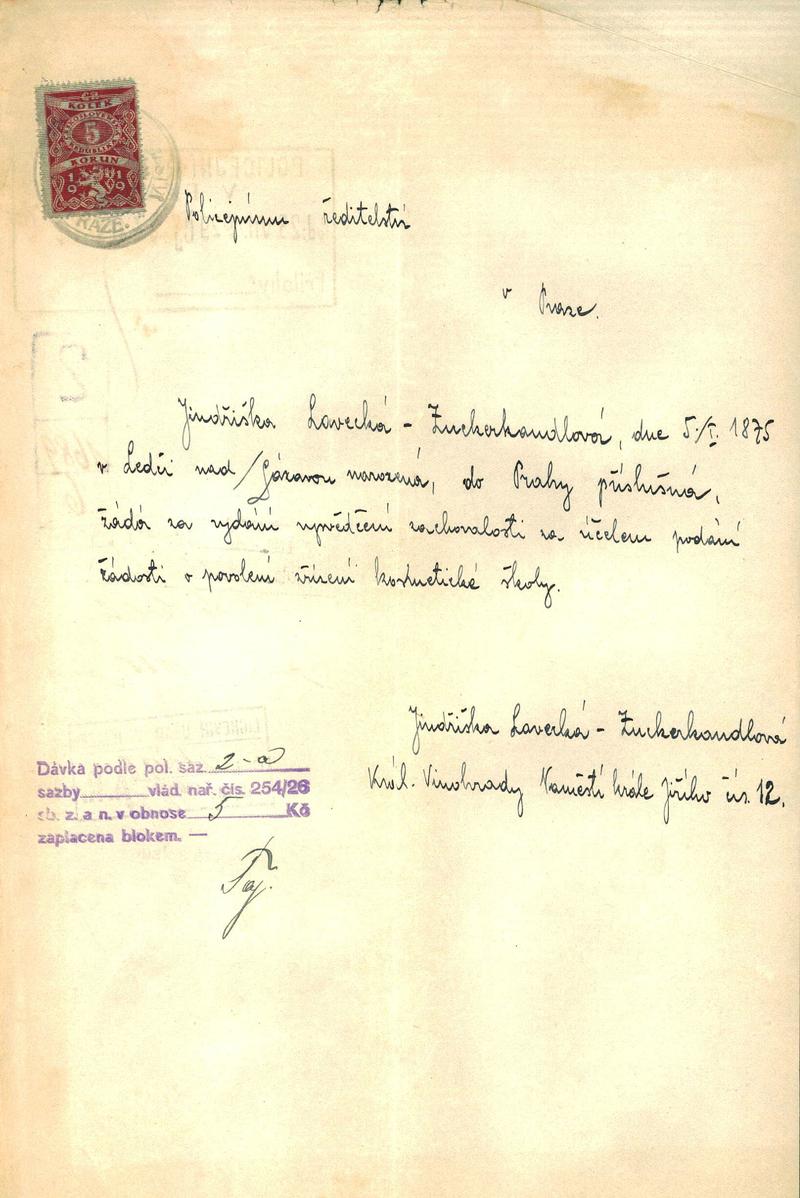 Nationalarchiv Prag > Polizei-Direktion Prag > 1931-1940 > Z > Zuckerkandlová Jindřiška