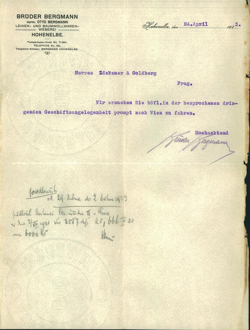 For publication purposes, contact the National Archives in Prague, where the original document is located. The document was digitized by the Terezín Initiative Institute, the Terezín Album project