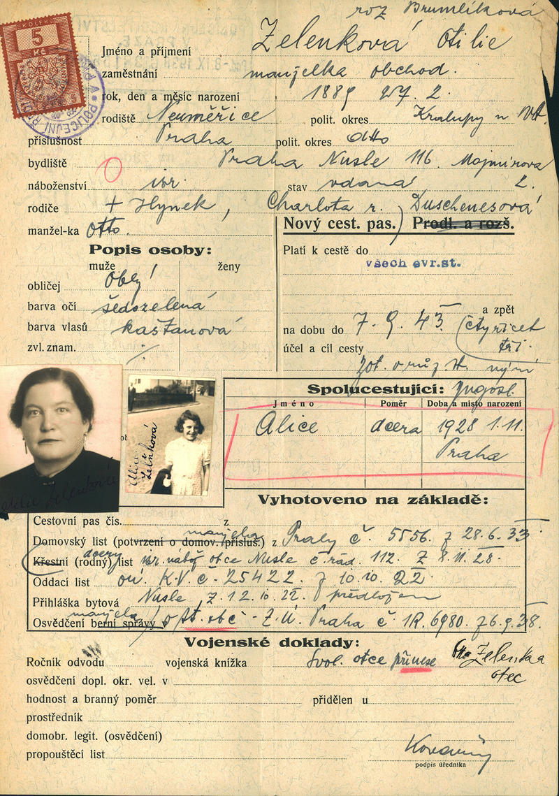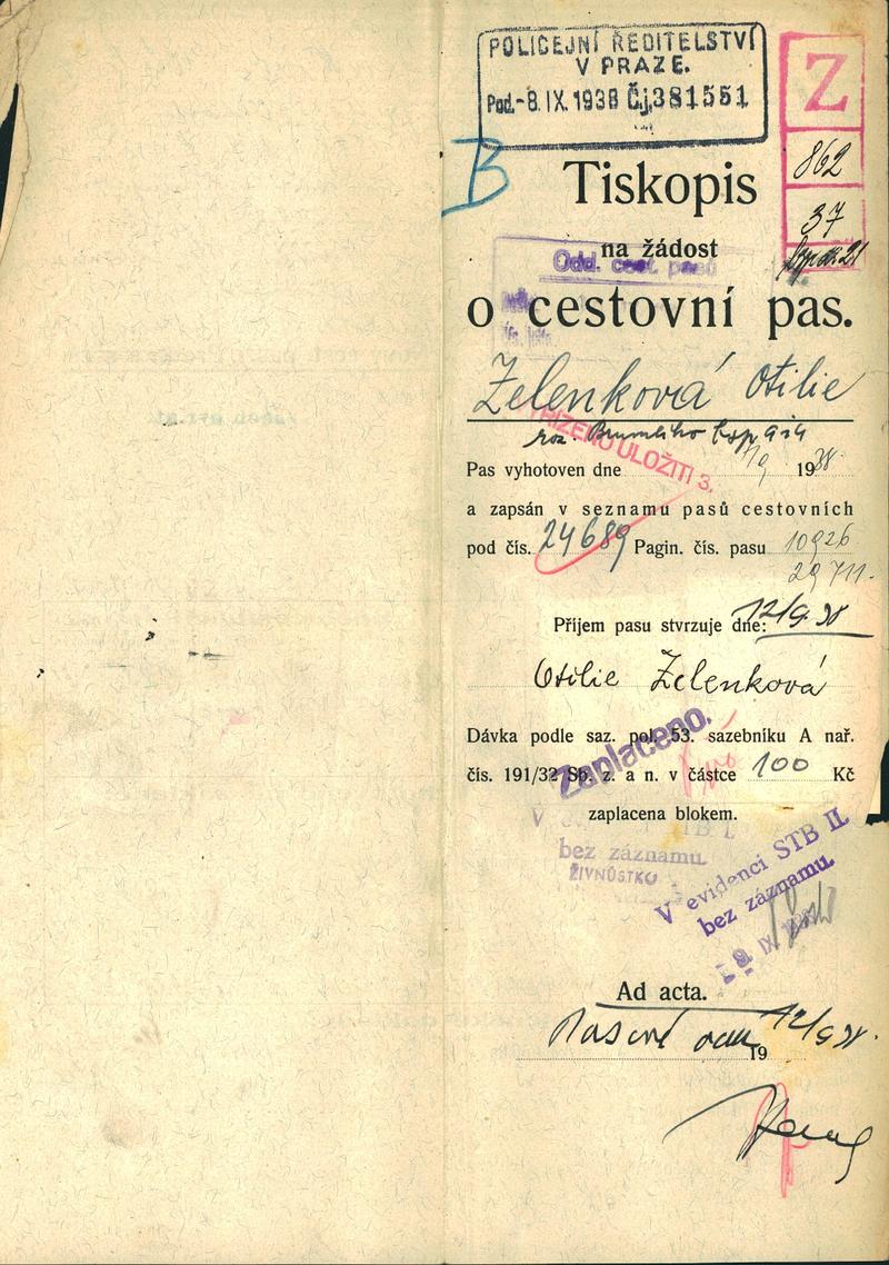 Zelenková Otilie: Žádost o vydání cestovního pasu