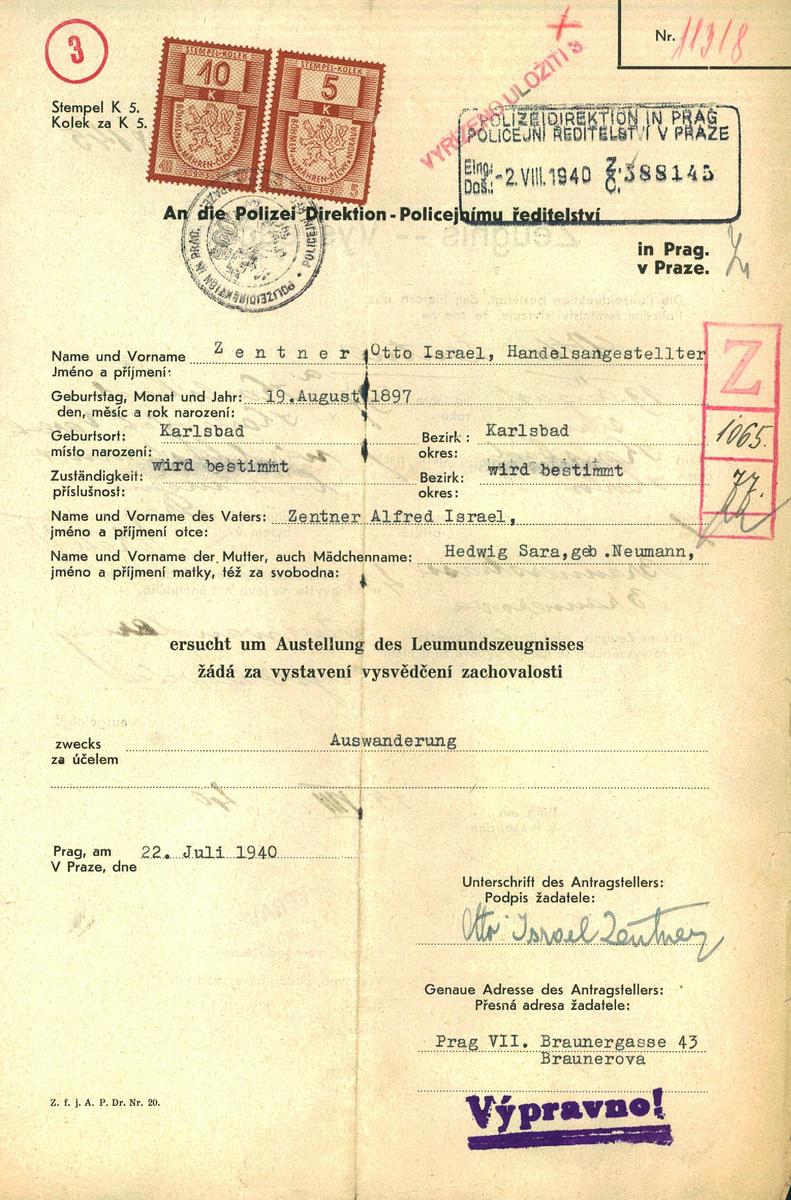 Nationalarchiv Prag > Polizei-Direktion Prag > 1941-1950 > Z > Zentner Otto