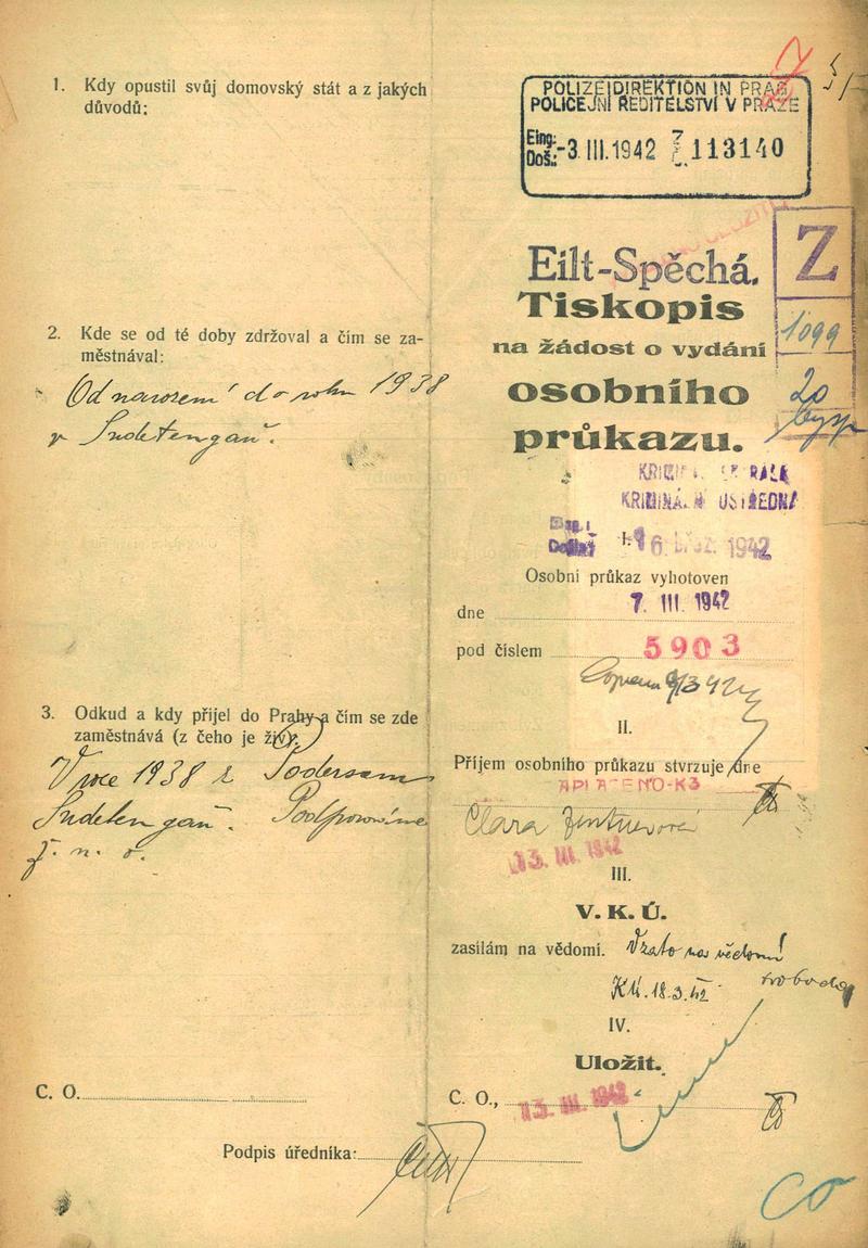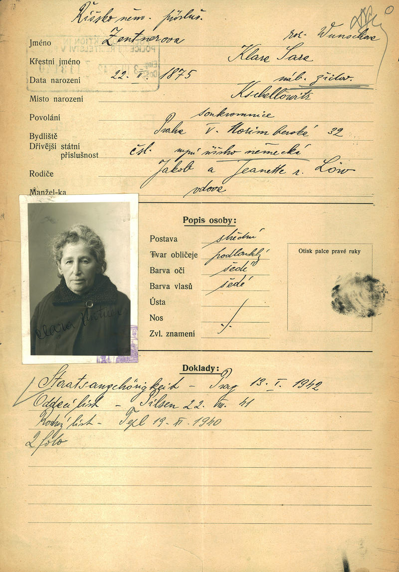 Nationalarchiv Prag > Polizei-Direktion Prag > 1941-1950 > Z > Zentnerová Klára