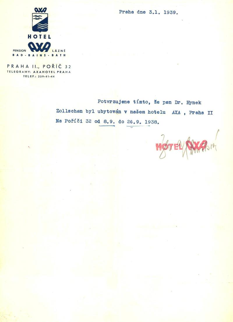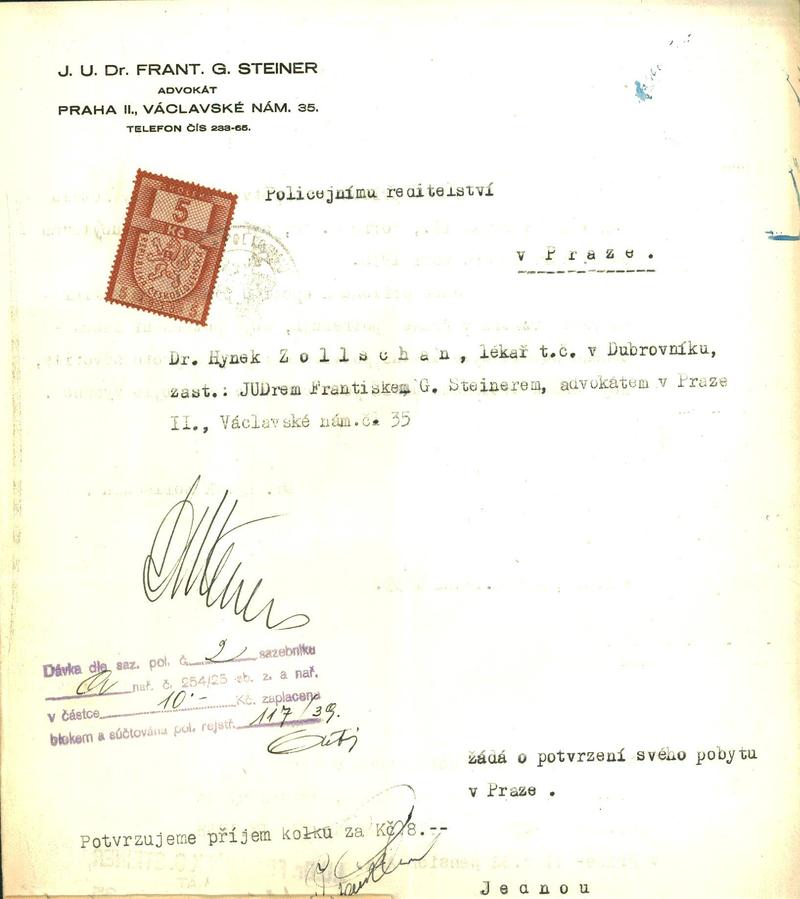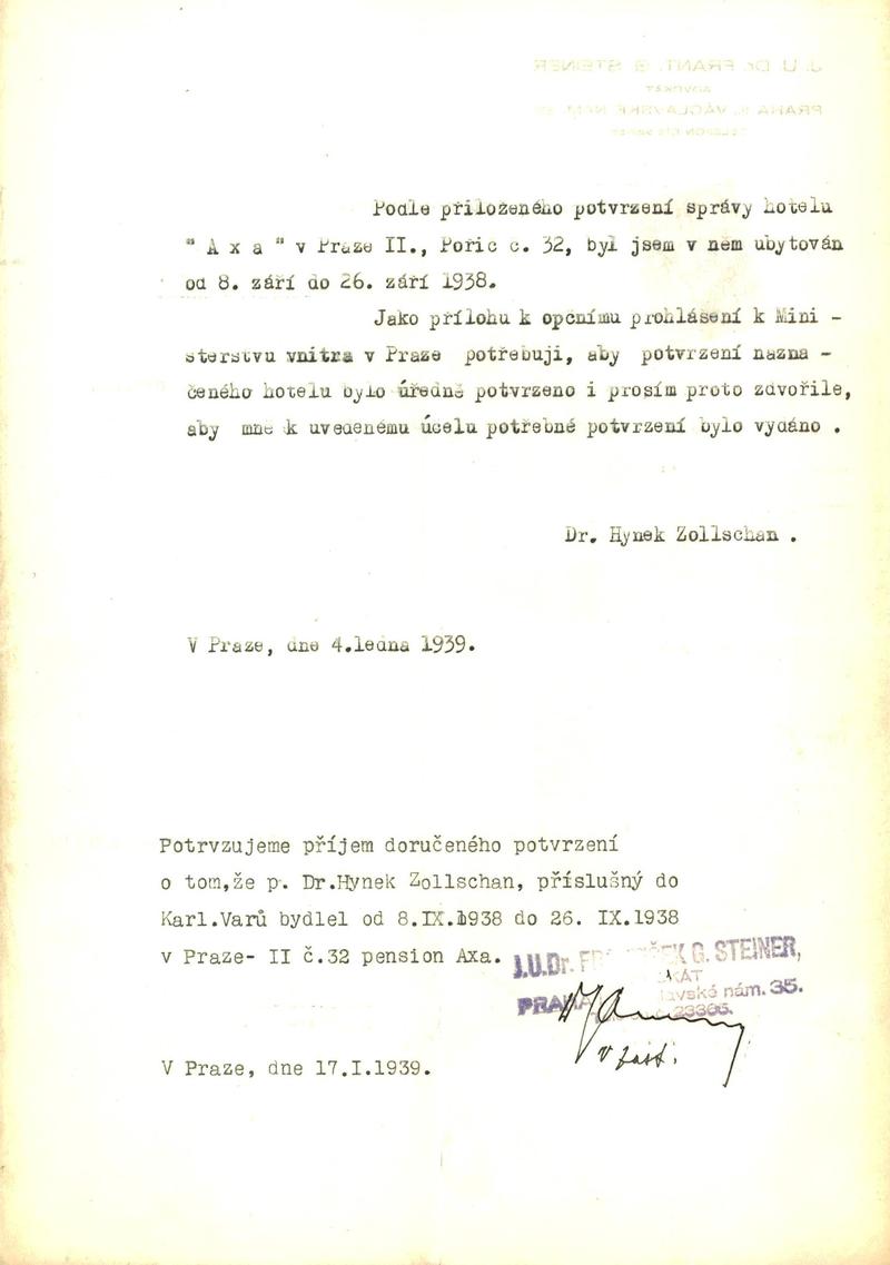 Zollschan Hugo: Žádost o potvrzení pobytu