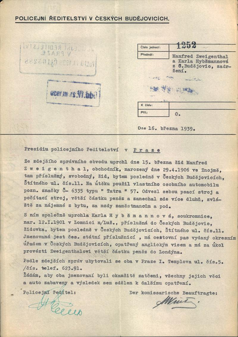 Nationalarchiv Prag > Polizei-Direktion Prag > 1941-1950 > Z > Zweigenthal Manfred