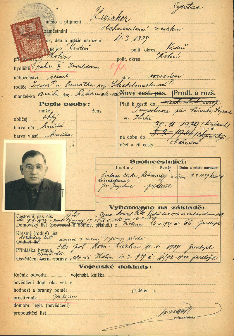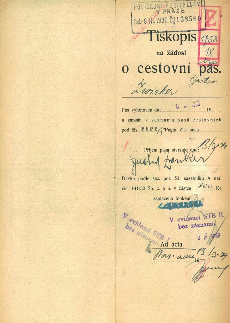 Zwicker Gustav: Žádost o prodloužení a rozšíření cestovního pasu