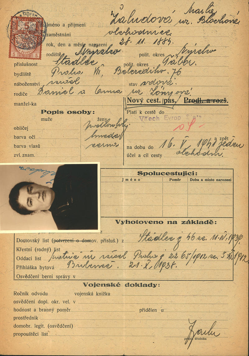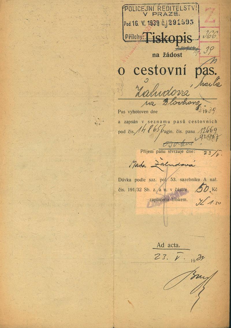 Žaludová Marta: Žádost o vydání cestovního pasu