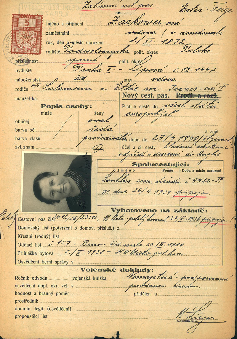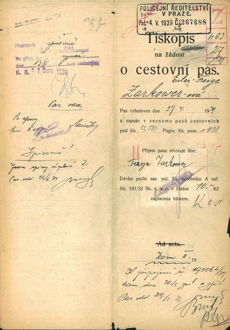 Zarkowerová Ester: Žádost o vydání prozatímního cestovního pasu