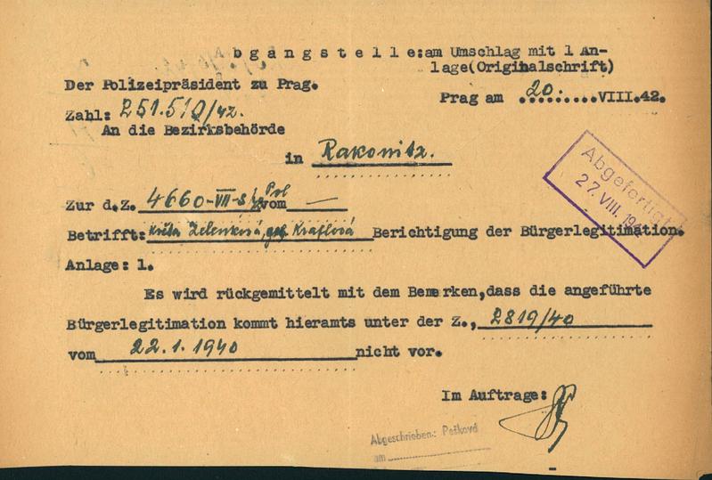 Nationalarchiv Prag > Polizei-Direktion Prag > 1941-1950 > Z > Zelenková Květa H.