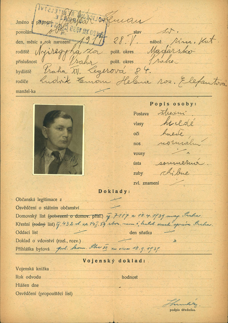 Nationalarchiv Prag > Polizei-Direktion Prag > 1941-1950 > Z > Zeman Otokar