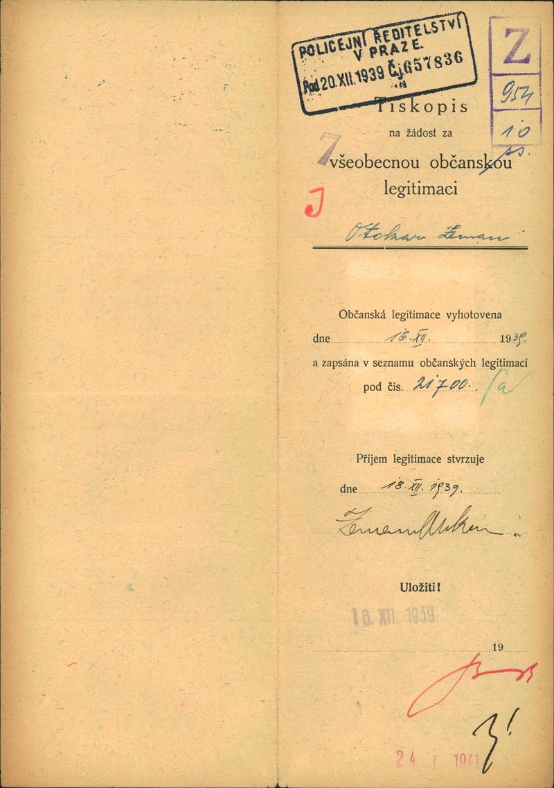 Zeman Otokar: Žádost o vydání občanské legitimace