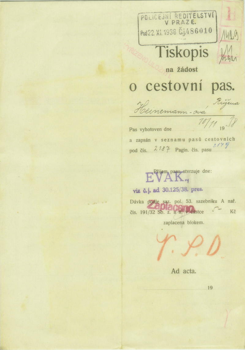 Nationalarchiv Prag > Polizei-Direktion Prag > 1931-1940 > H > Heinemannová Růžena