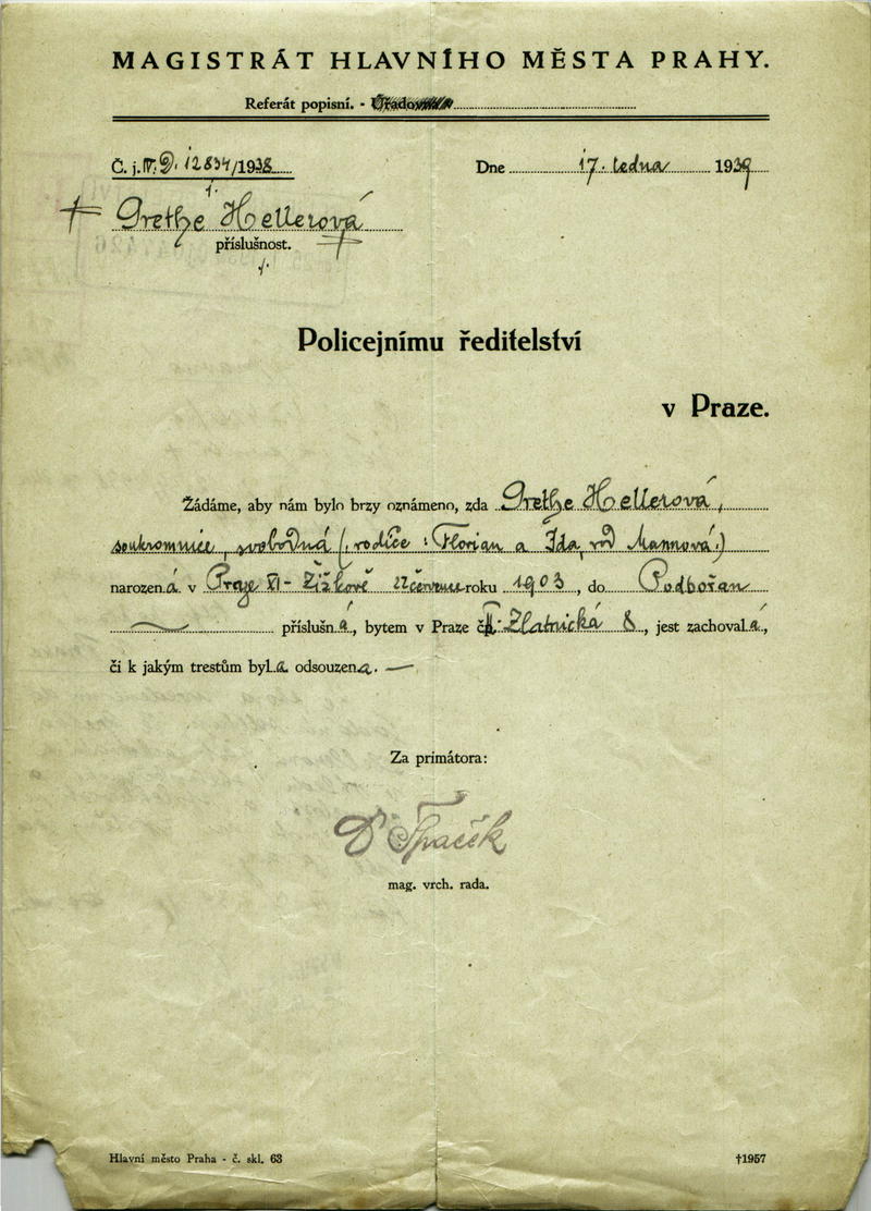 For publication purposes, contact the National Archives in Prague, where the original document is located. The document was digitized by the Terezín Initiative Institute, the Terezín Album project