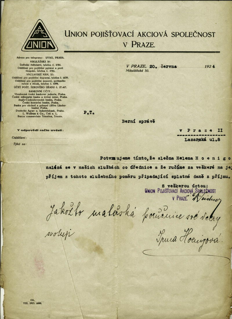 For publication purposes, contact the National Archives in Prague, where the original document is located. The document was digitized by the Terezín Initiative Institute, the Terezín Album project