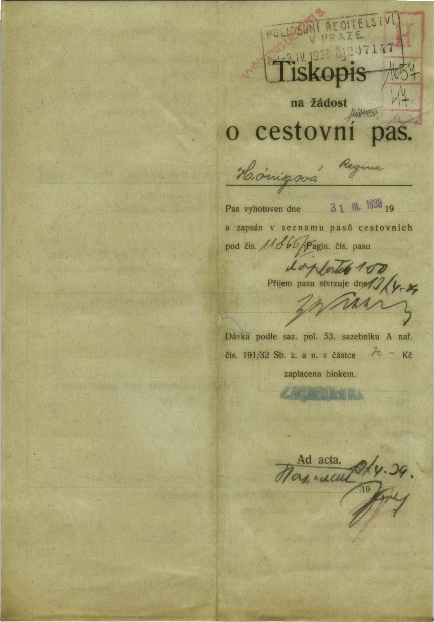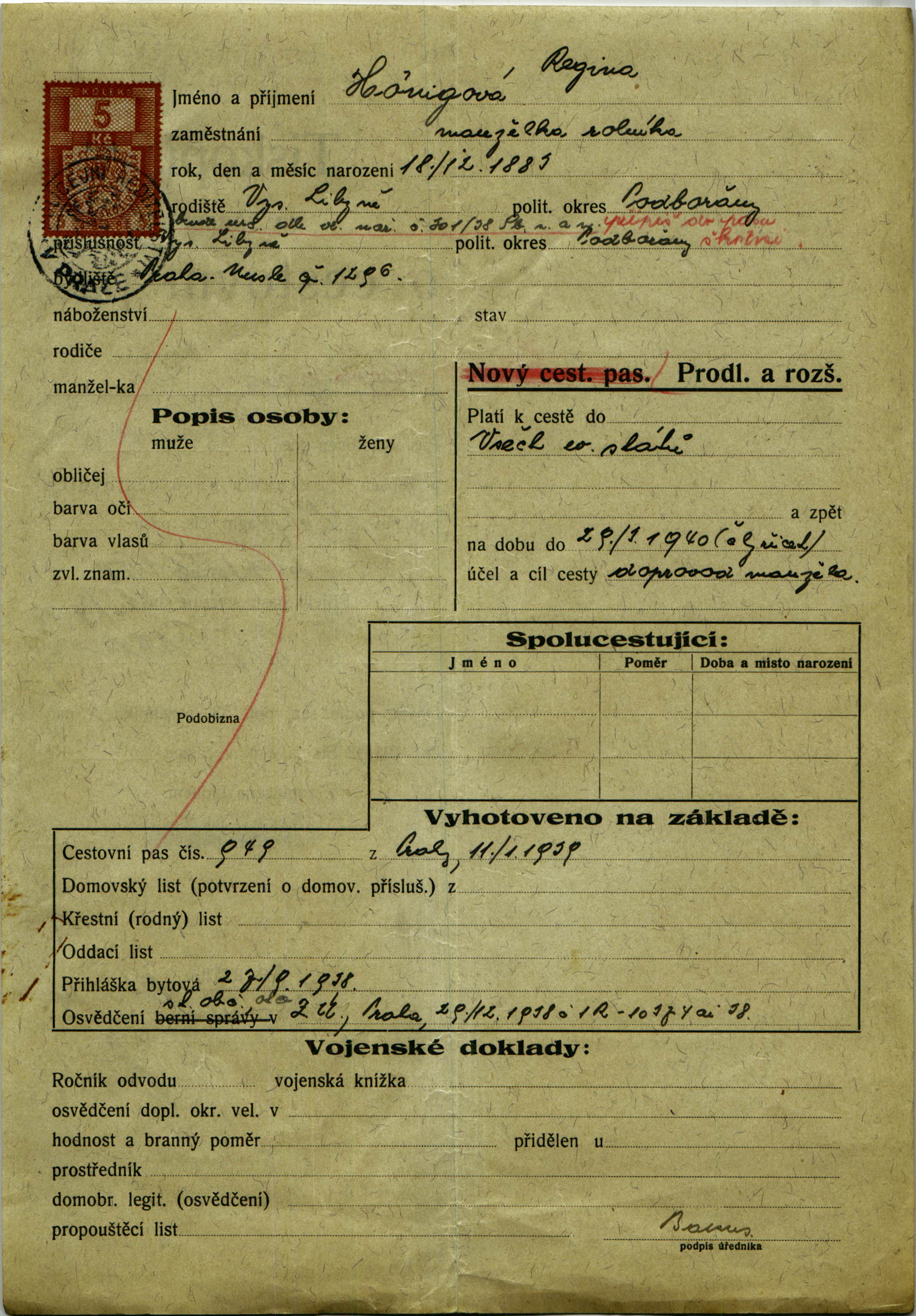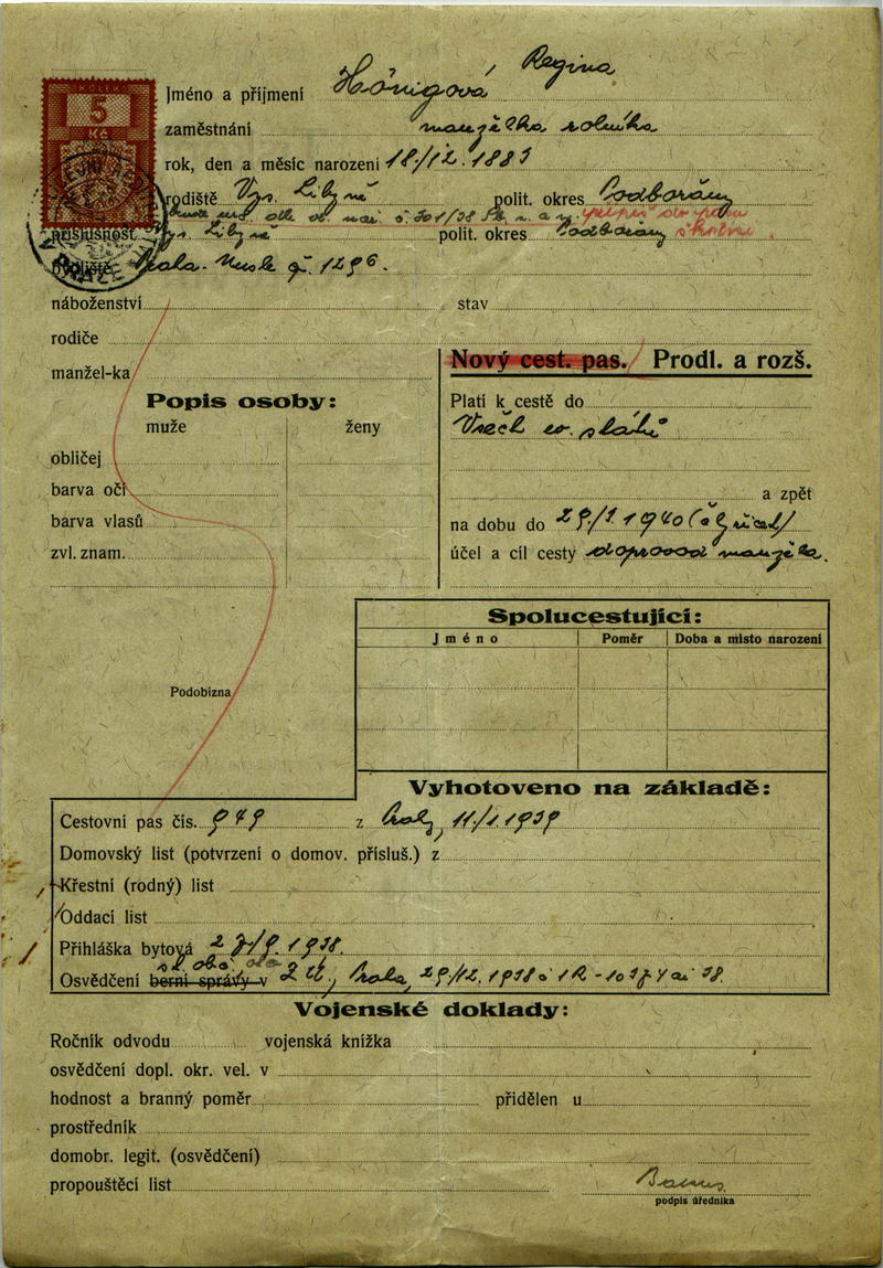 Hönigová Regina: Žádost o prodloužení a rozšíření cestovního pasu