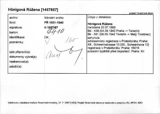 For publication purposes, contact the National Archives in Prague, where the original document is located. The document was digitized by the Terezín Initiative Institute, the Terezín Album project