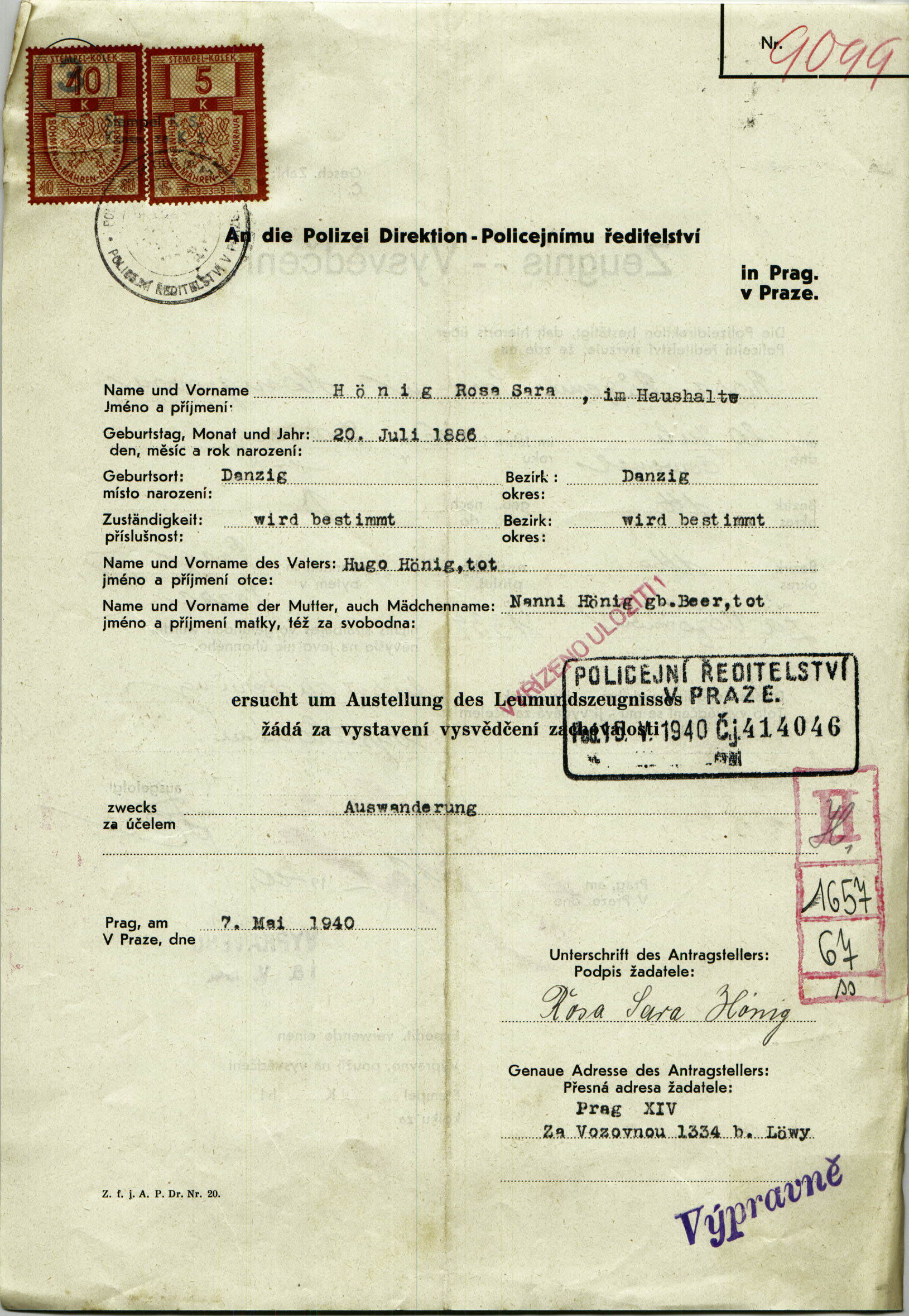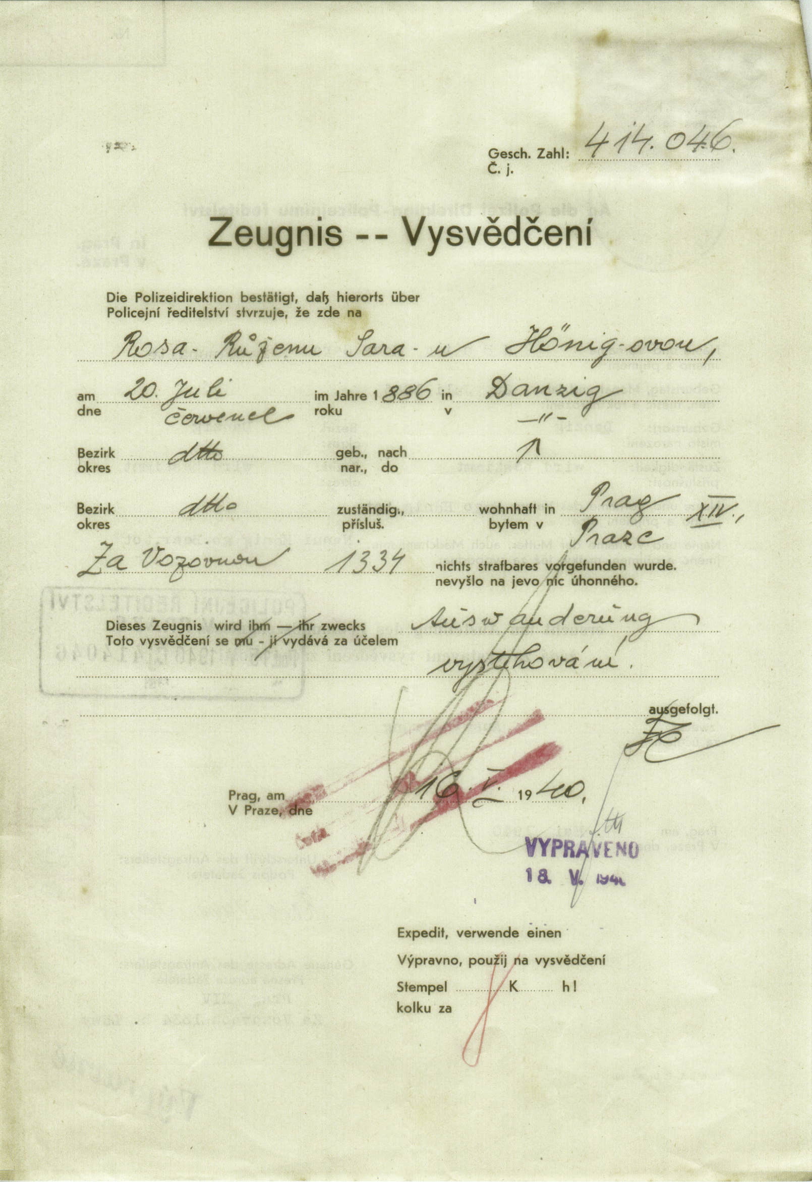 Hönigová Růžena: Vysvědčení zachovalosti