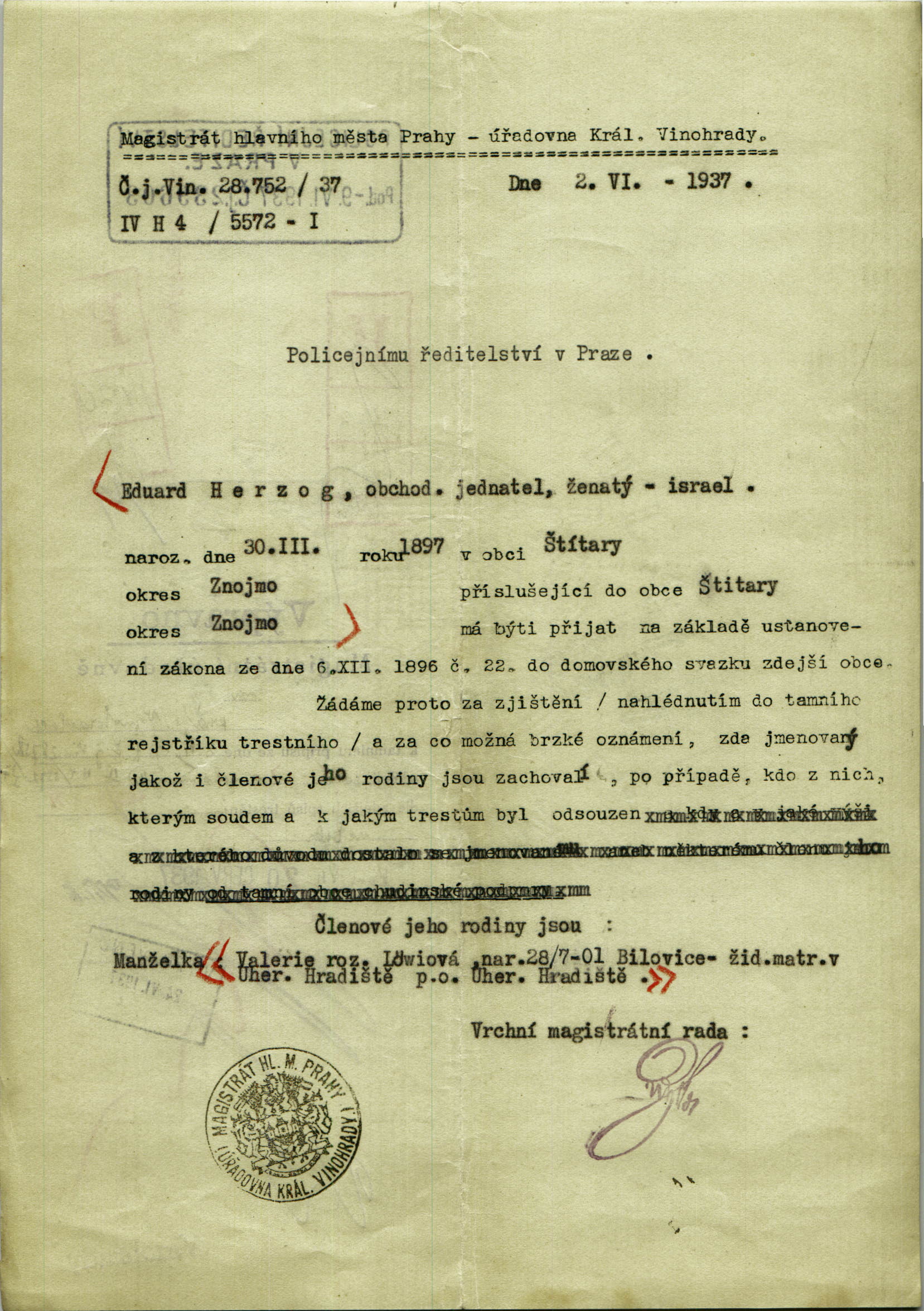 For publication purposes, contact the National Archives in Prague, where the original document is located. The document was digitized by the Terezín Initiative Institute, the Terezín Album project
