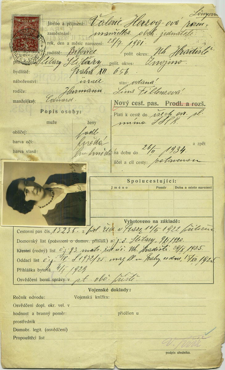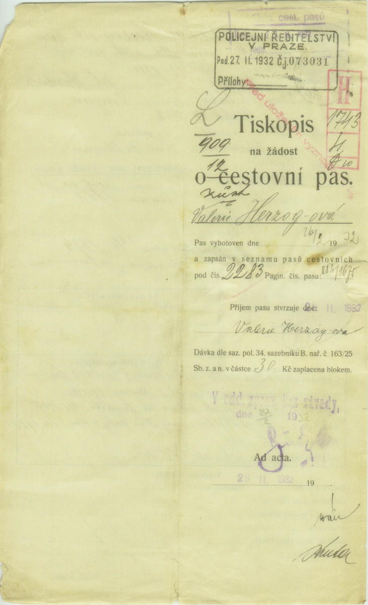 Herzogová Valerie: Žádost o vydání cestovního pasu