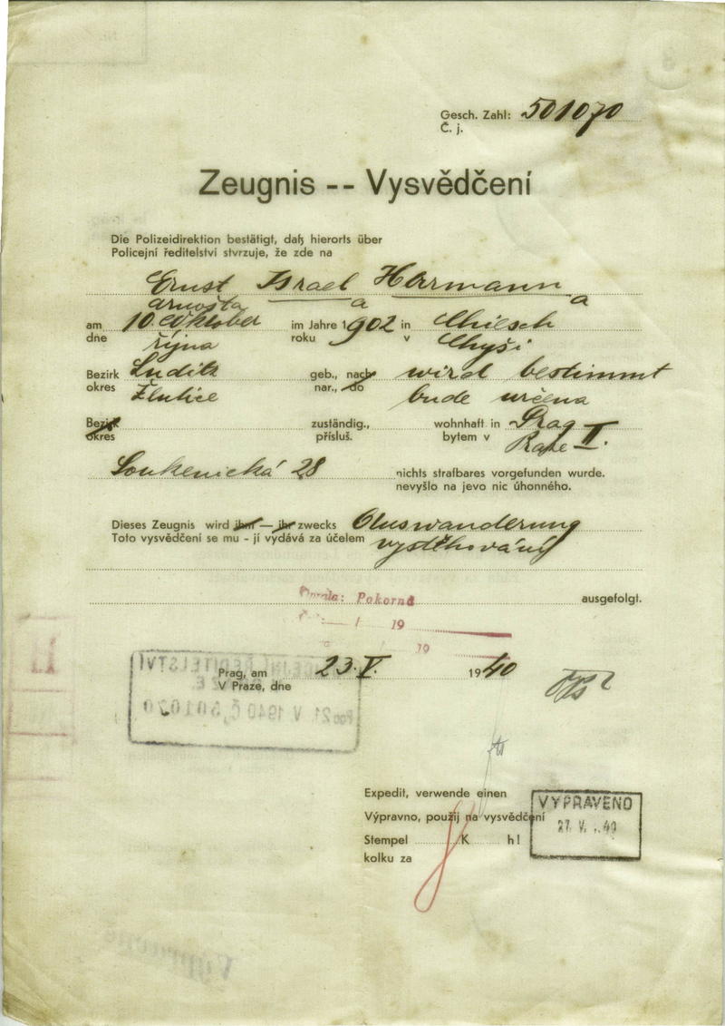 For publication purposes, contact the National Archives in Prague, where the original document is located. The document was digitized by the Terezín Initiative Institute, the Terezín Album project