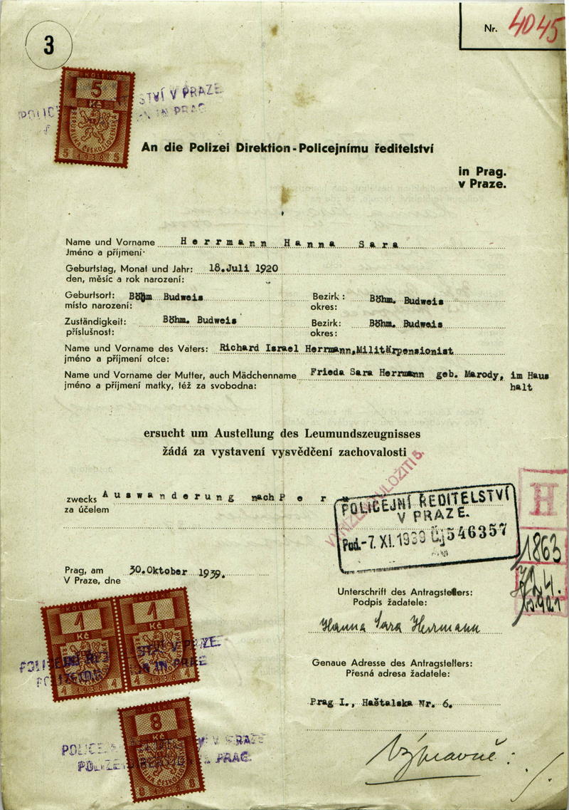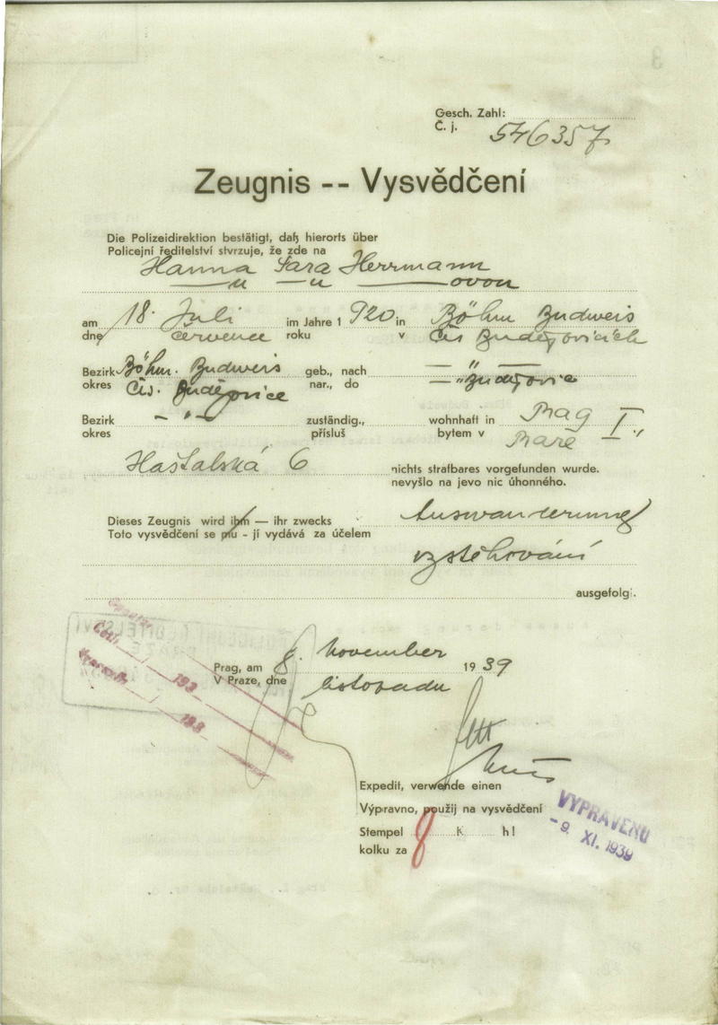 Nationalarchiv Prag > Polizei-Direktion Prag > 1931-1940 > H > Herrmannová Hanna
