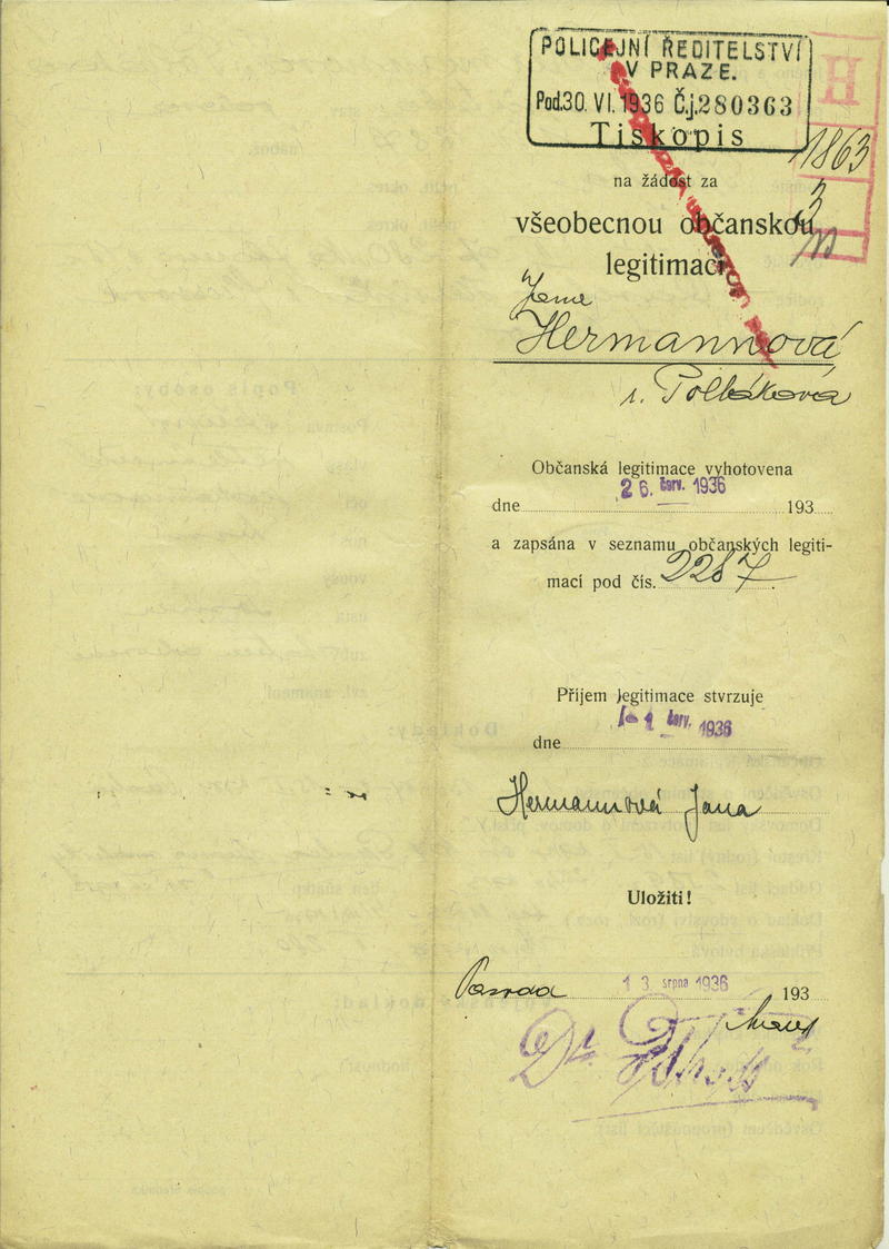 Nationalarchiv Prag > Polizei-Direktion Prag > 1931-1940 > H > Hermannová Jana