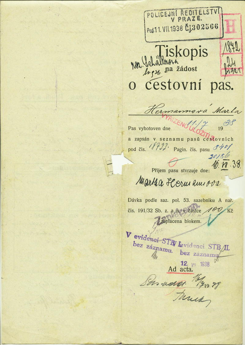 Nationalarchiv Prag > Polizei-Direktion Prag > 1931-1940 > H > Herrmannová Marta