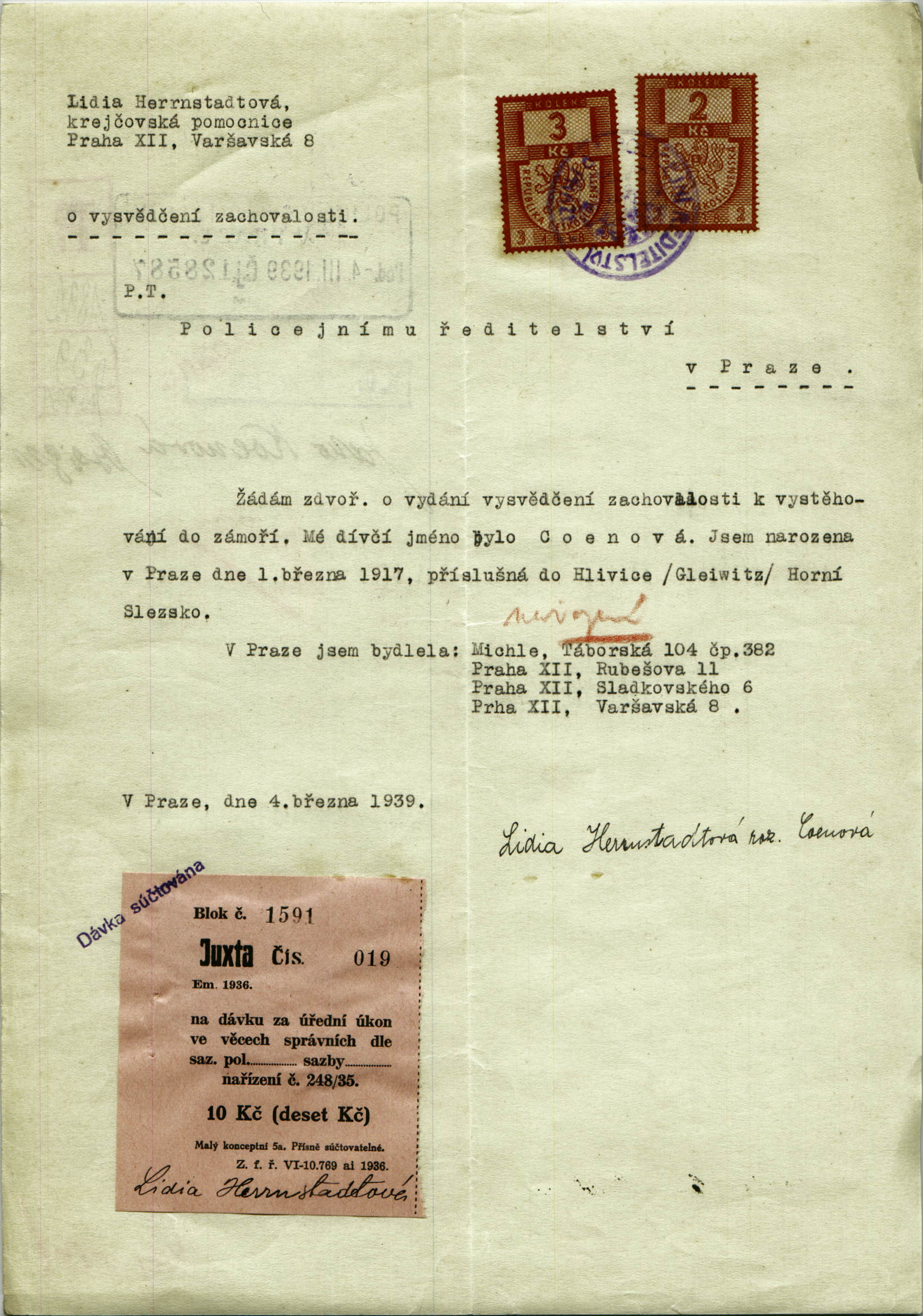 Herrnstadtová Lidia: Žádost o vystavení vysvědčení zachovalosti