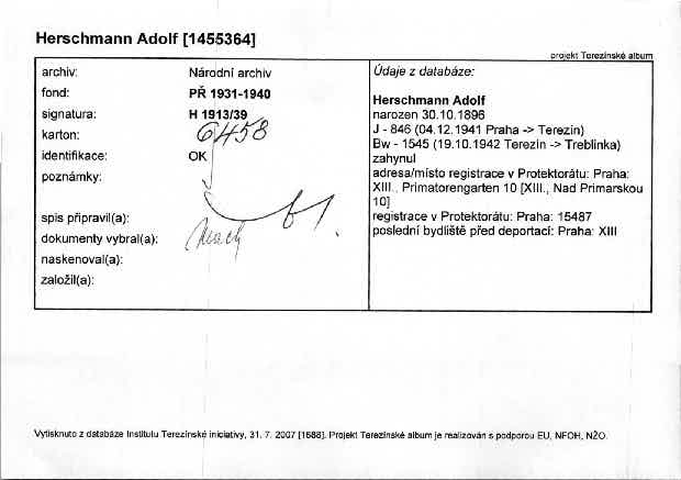For publication purposes, contact the National Archives in Prague, where the original document is located. The document was digitized by the Terezín Initiative Institute, the Terezín Album project