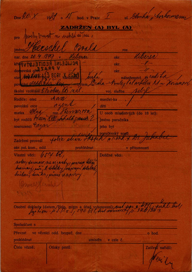 Nationalarchiv Prag > Polizei-Direktion Prag > 1931-1940 > H > Herschel Osvald