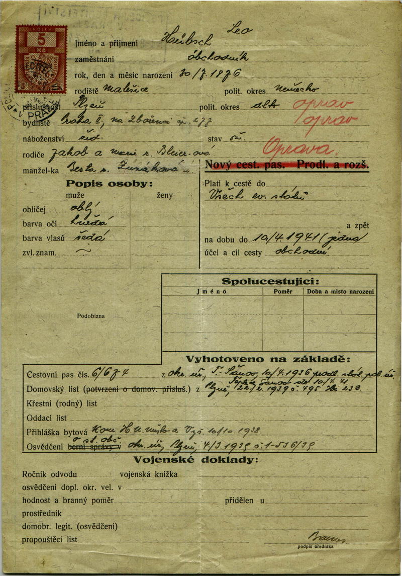 Nationalarchiv Prag > Polizei-Direktion Prag > 1931-1940 > H > Huebsch Leo