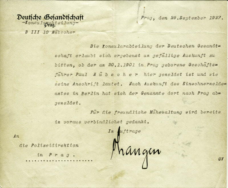 Nationalarchiv Prag > Polizei-Direktion Prag > 1931-1940 > H > Hübscher Pavel