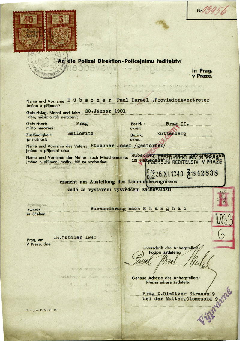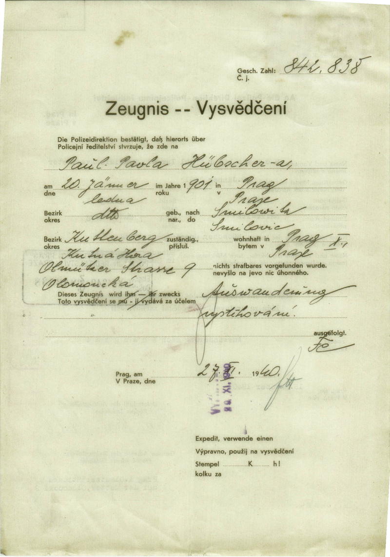 Nationalarchiv Prag > Polizei-Direktion Prag > 1931-1940 > H > Hübscher Pavel
