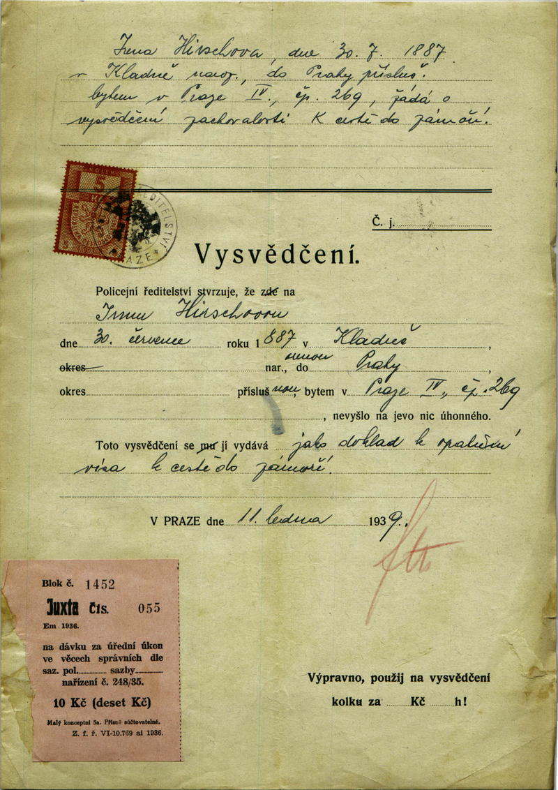 Nationalarchiv Prag > Polizei-Direktion Prag > 1931-1940 > H > Hirschová Irena