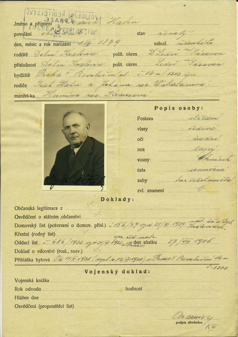 Nationalarchiv Prag > Polizei-Direktion Prag > 1931-1940 > H > Hahn Bedřich