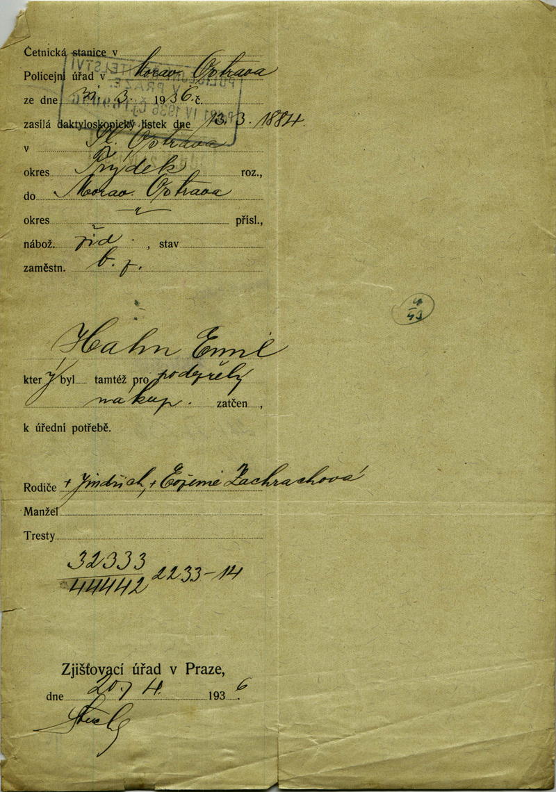Nationalarchiv Prag > Polizei-Direktion Prag > 1931-1940 > H > Hahn Emil