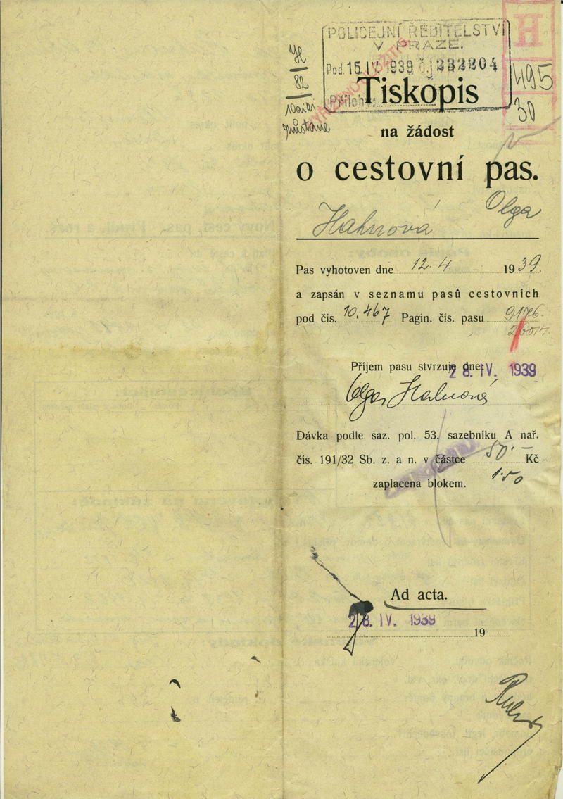 Nationalarchiv Prag > Polizei-Direktion Prag > 1931-1940 > H > Hahnová Olga