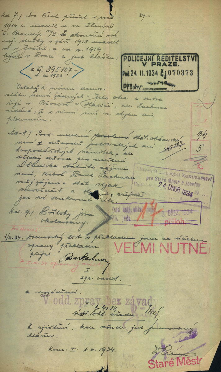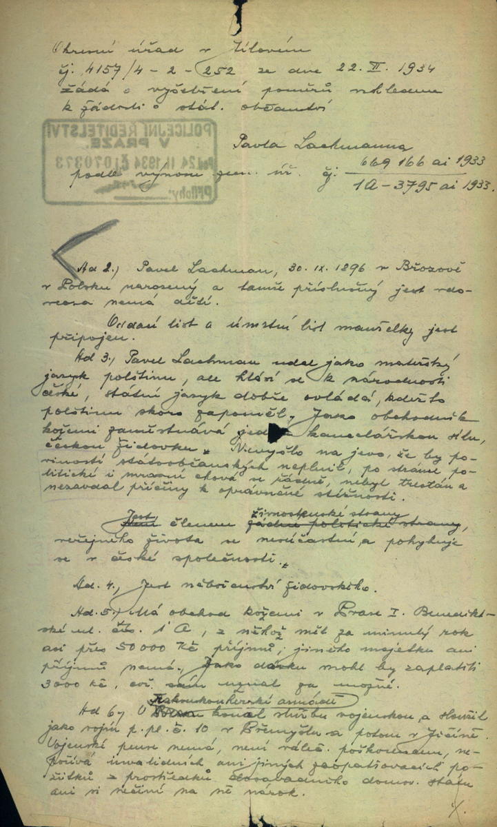 Nationalarchiv Prag > Polizei-Direktion Prag > 1941-1950 > L > Lachmann Pavel