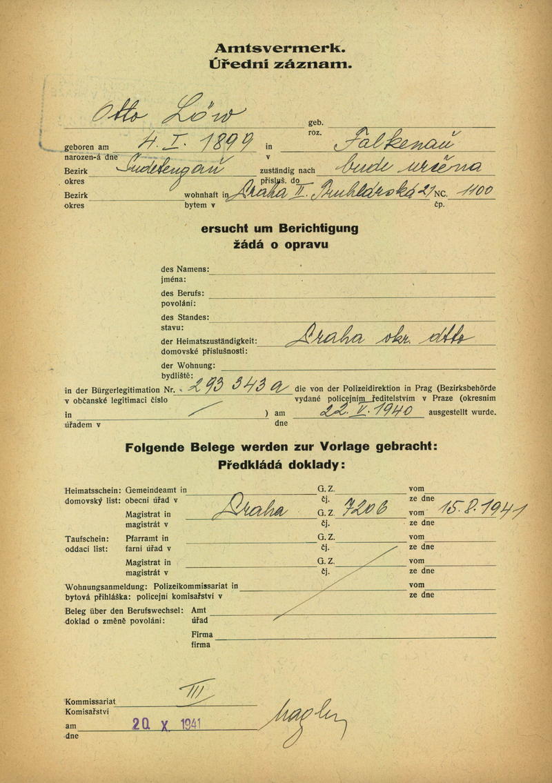 Nationalarchiv Prag > Polizei-Direktion Prag > 1941-1950 > L > Löw Otto