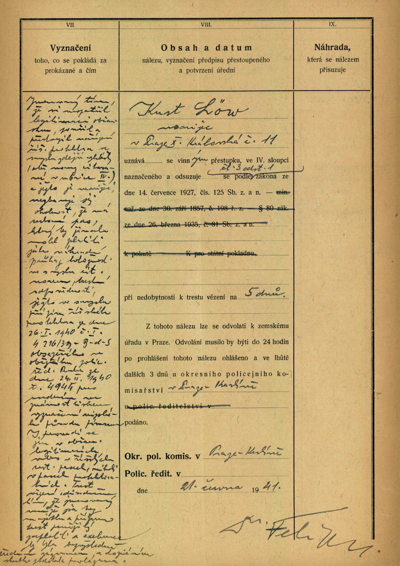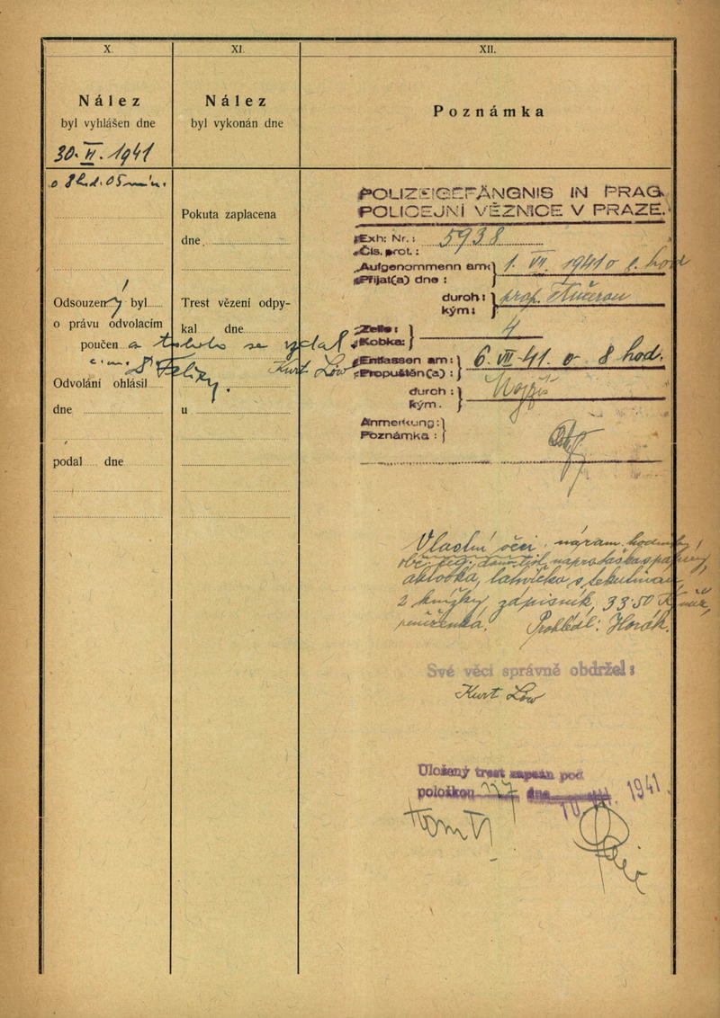 Nationalarchiv Prag > Polizei-Direktion Prag > 1941-1950 > L > Löw Kurt